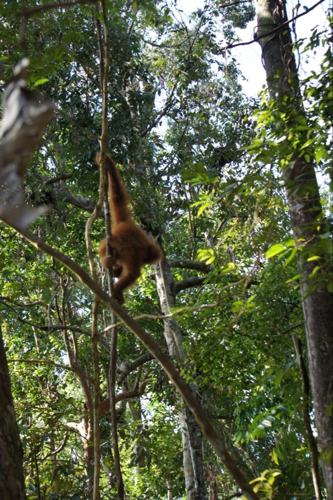 Well it wasn’t planned, but now we were here at the Orangutan Feeding and Rehabilitation Center. This center was created in the eighties to take orangutans that were old pets or zoo animals, and teach them to live in the wild again. It worked really well, so well in fact that they had to move the center deeper into the jungle because this part was saturated already with wild and semi wild orangutans. But they still would do twice a day feedings of boring food like bananas and such, so they would not be dependent on the help. The food in the jungle would be so much tastier than bananas, such delicacies like durian, yummy. So the orangutans that would show up were usually old or nursing mothers who needed the extra help.