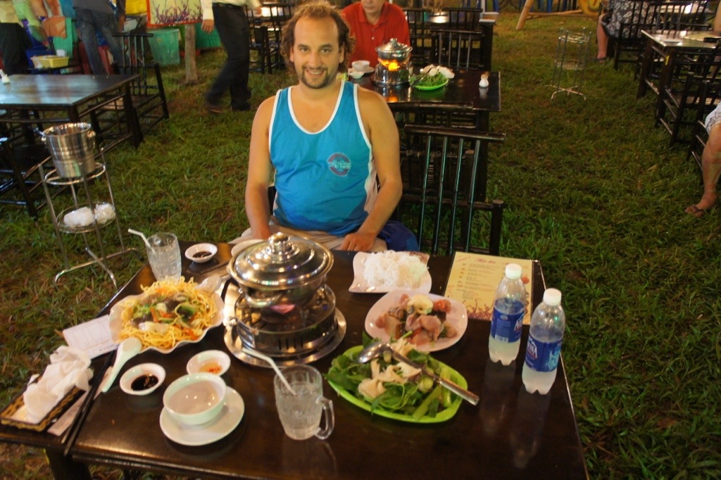 During the next few days the city was preparing for their New Year’s Eve celebration. The long park in the center of the city had a dozen stages with everything from water puppetry to rock shows. There we’re all kinds of venders lining the square with delicious foods. I got a hot-pot with a mix of mushrooms, herbs, chicken, snails, shrimps, and mussels. The hot pot is a boiling broth that you cook all these ingredients in yourself. The broth had just enough flavor to tie all the ingredients together, with out over powering any of them. The staff was helping me put it all together. To say I pigged out would be an understatement, I am pretty sure it was meant for two people, not one. After that meal we watched a water puppet show. For the show there is a pool of water with a curtain dropping down to the water hiding the puppeteer. The puppets are in front of the curtain at the end of long rods under the water controlled by the puppeteer. They have clowns, demons, elephants and even fire-breathing dragons. A traditional band plays music while it goes on. I was a little sad to not stay for New Year’s Eve, but I think all this pageantry was a great good-bye to Saigon.
